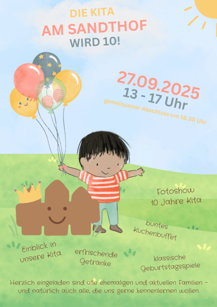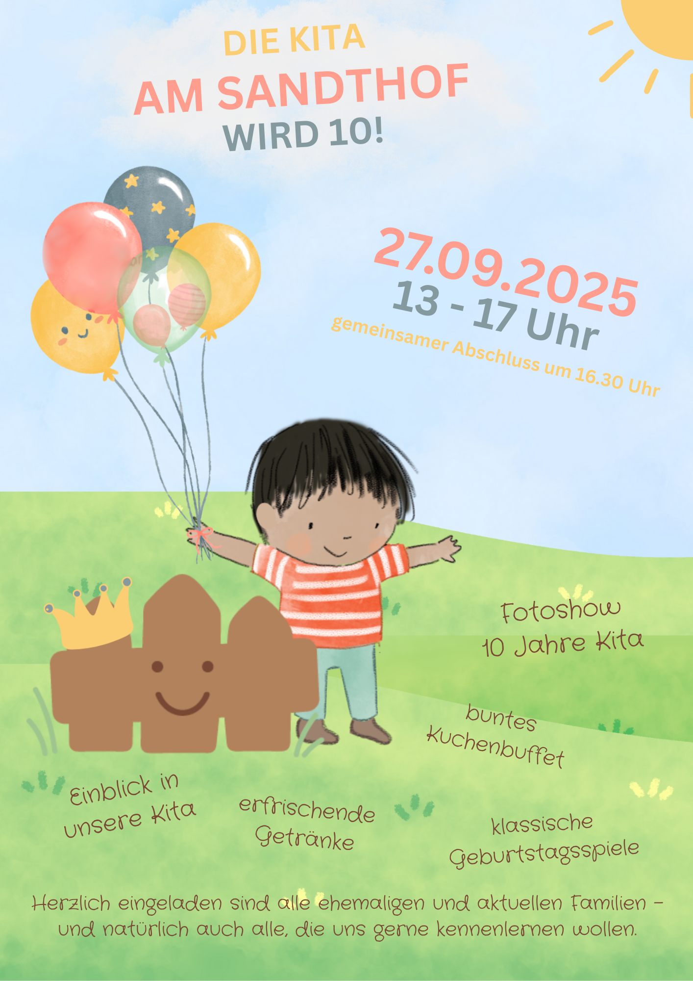 Unsere Kita Am Sandthof feiert ihr 10jähriges Bestehen, kommt gerne und feiert mit