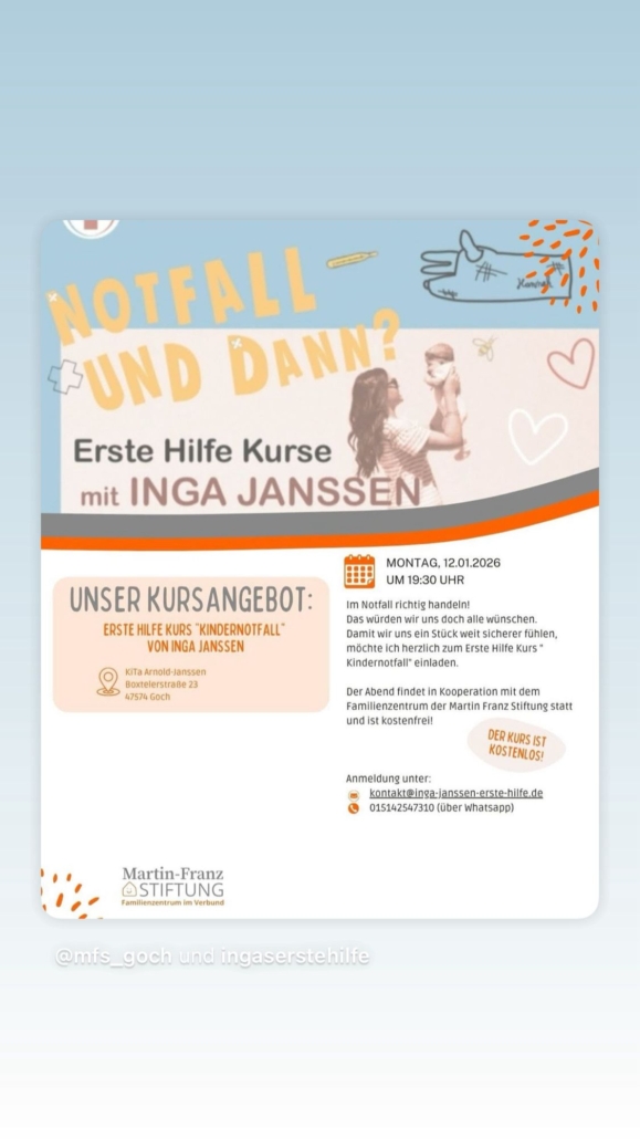 Damit wir uns ein Stück weit sicherer fühlen, möchten wir herzlich zum Erste Hilfe Kurs „Kindernotfall“ einladen.