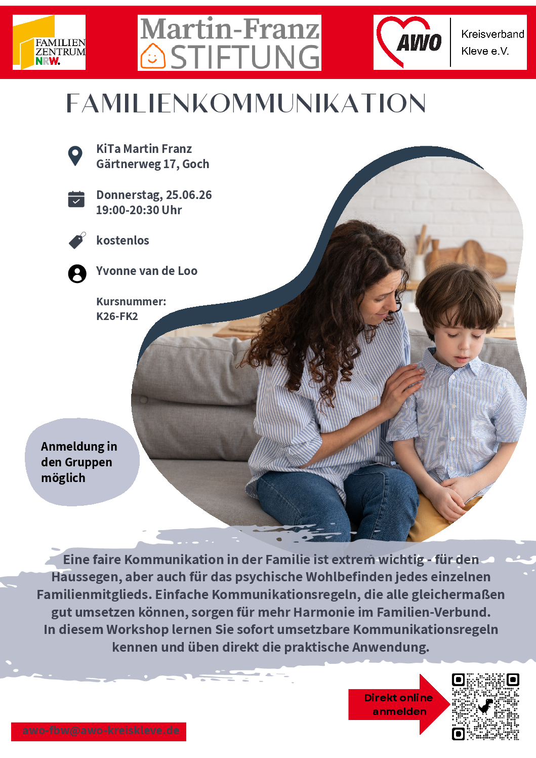 Frau Rieu arbeitet in der Beratungsstelle für Kinder, Jugendliche und Familien und sie berät Eltern und Kinder zu Themen rundum Erziehung und Familie. Außerdem ist sie in verschiedenen Familienzentren tätig, um Eltern und Erziehern unkompliziert und schnell Gespräche zu ermöglichen. Gerne dürfen Sie für den 21.04.2026 in der Kita Irmgardis Hülm einen Termin vereinbaren, wenn […]